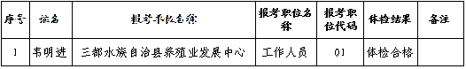 根據(jù)《三都水族自治縣2019年下半年公開引進急需緊缺人才公告》規(guī)定,擬對體檢合格的考生進行考察?,F(xiàn)將有關事宜公告如下:
