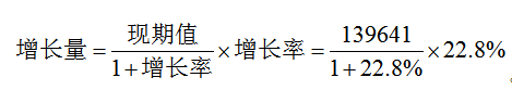 問題(3)所求為增長多少萬元,顯然考查的是增長量。這題所求是2018年3月與上一年同期相比,因此是同比增長量,應(yīng)該用同比增長率22.8%。根據(jù)公式: