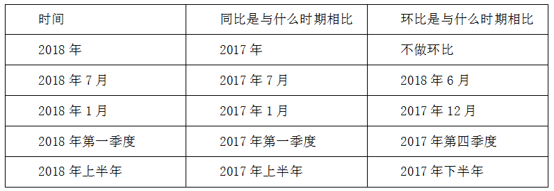 環(huán)比:以最小的時(shí)間概念為標(biāo)準(zhǔn)向過去循環(huán)一個(gè)周期進(jìn)行比較。